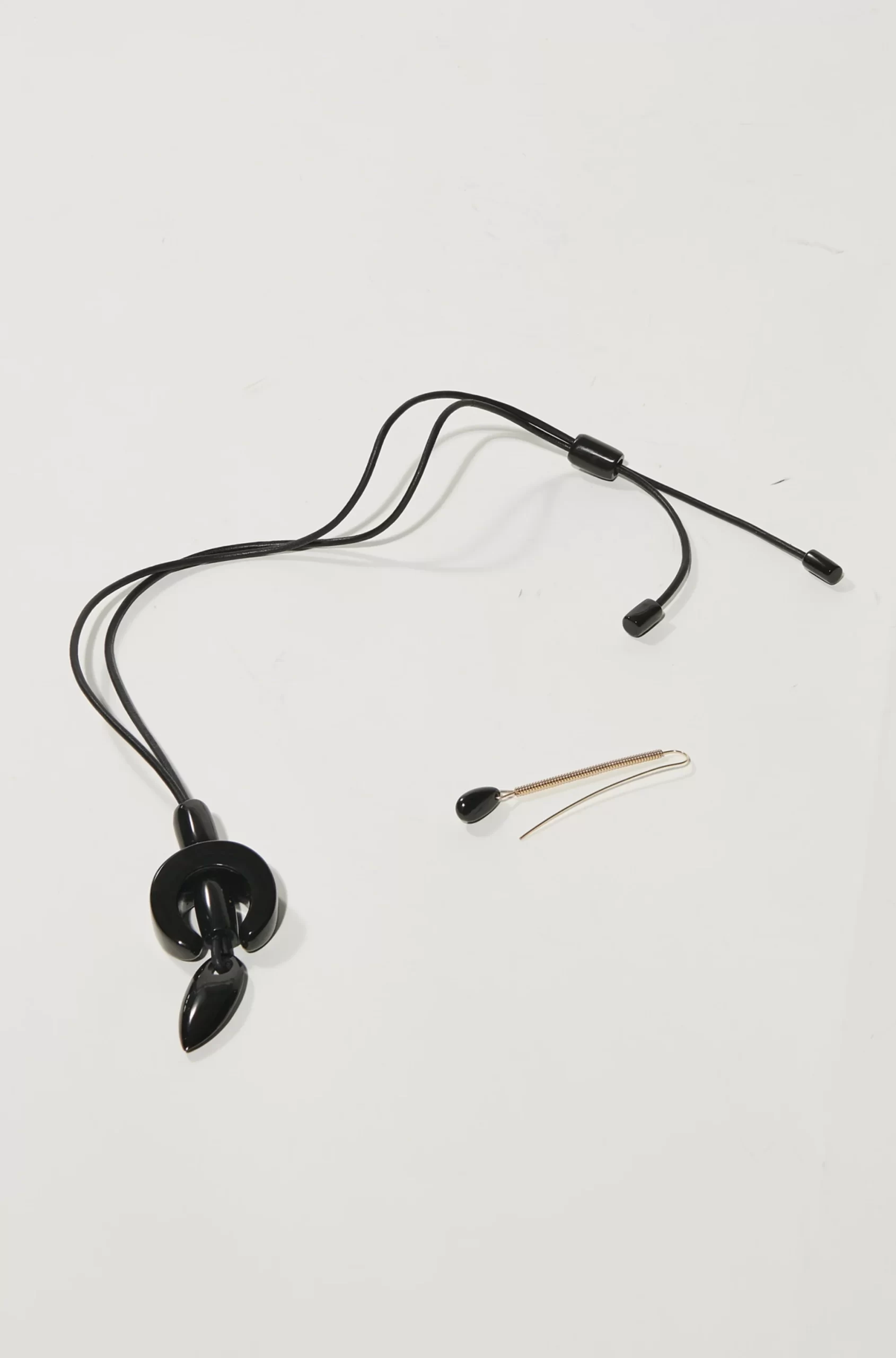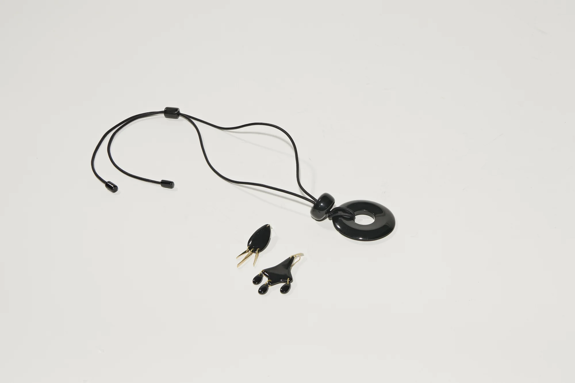 Lisa EisnerBlack Arch Necklace, Twisted Sister EarringsWyoming Black Jade, Leather Cord, Bronze