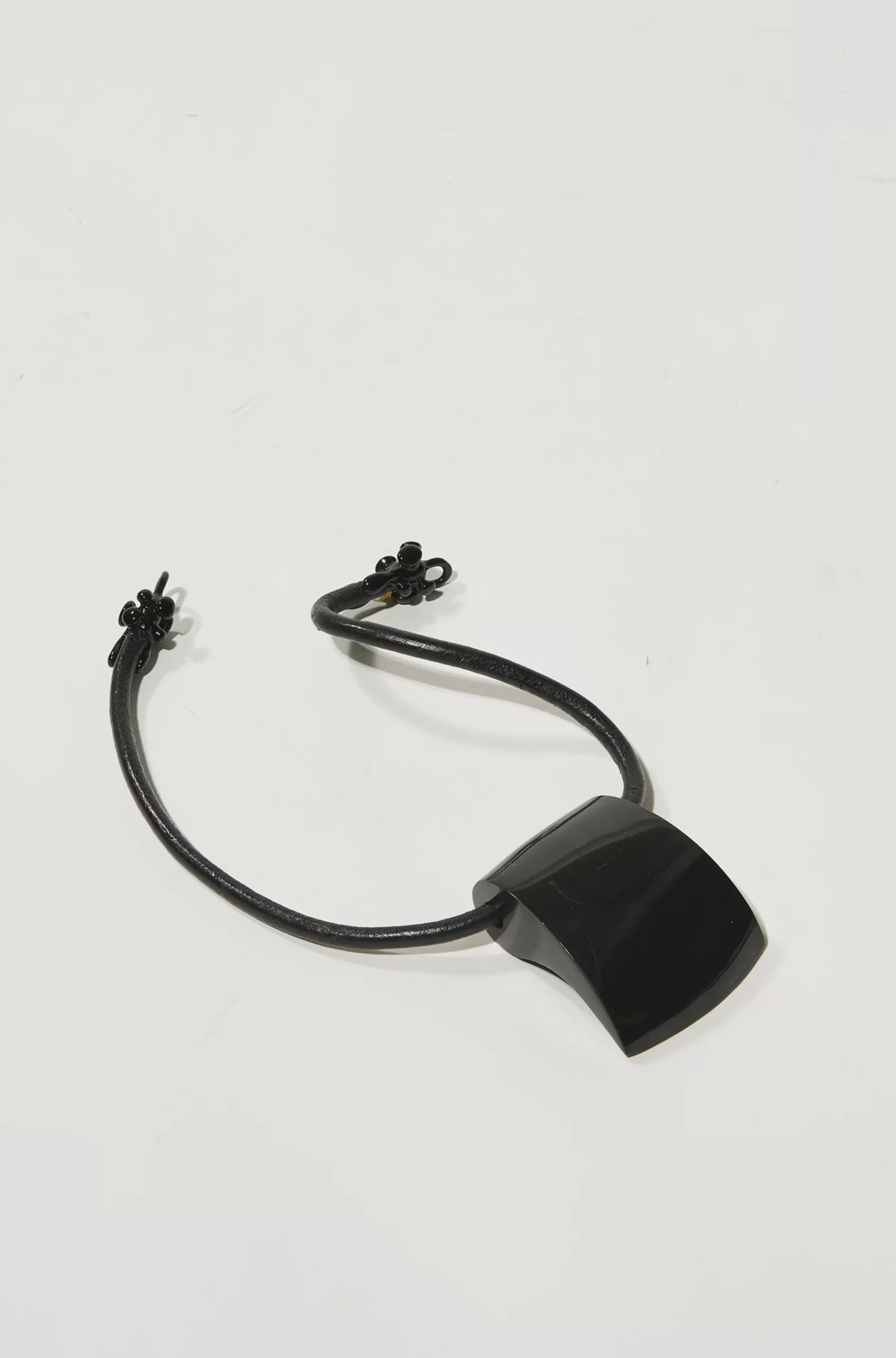 Lisa EisnerBlack Bend NecklaceWyoming Black Jade, Enamel Clasp, Leather Cord