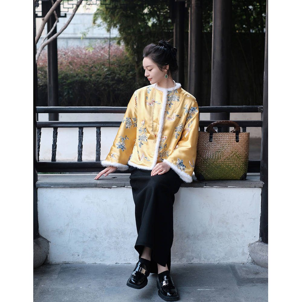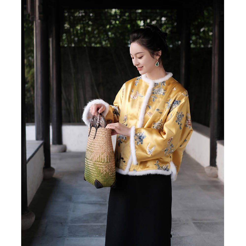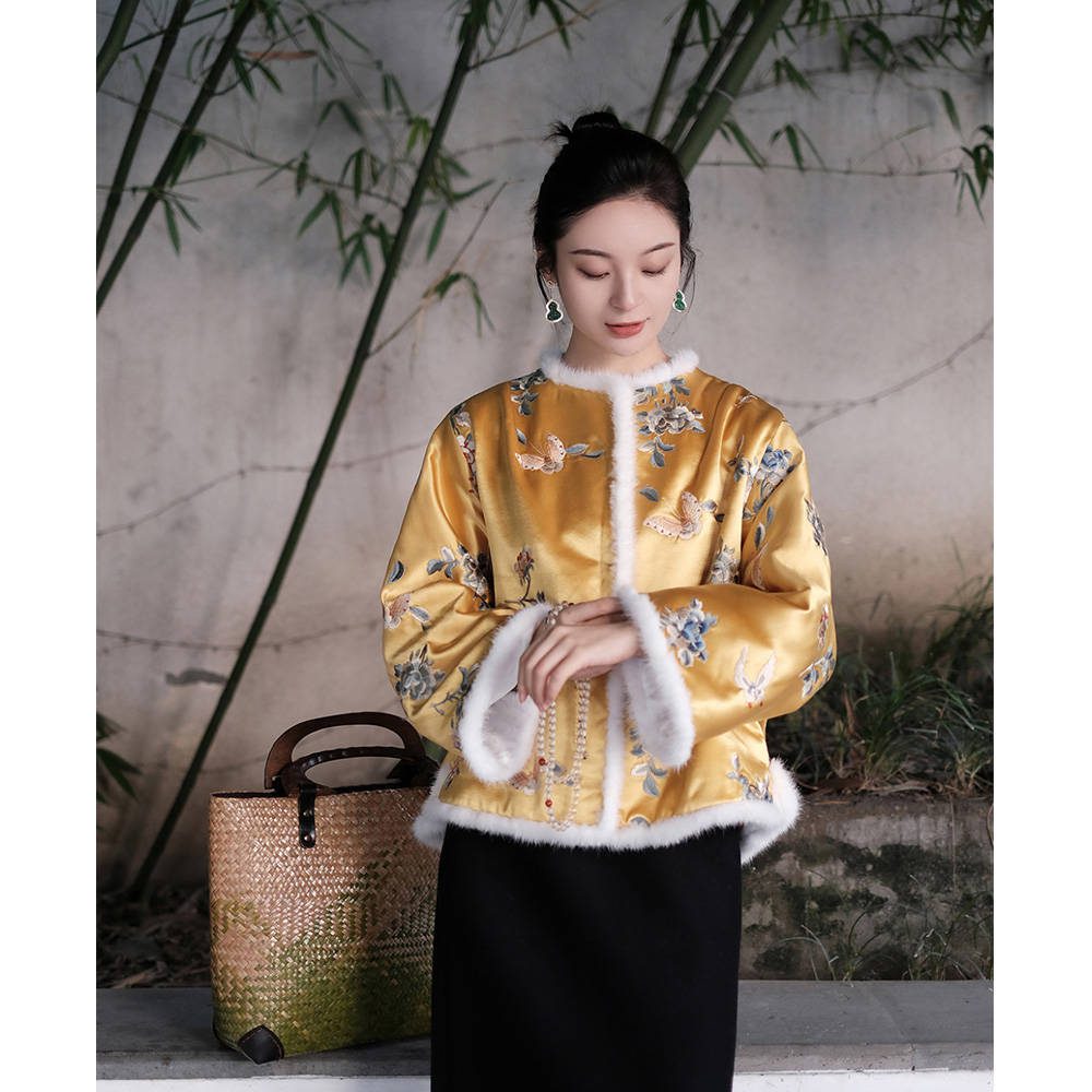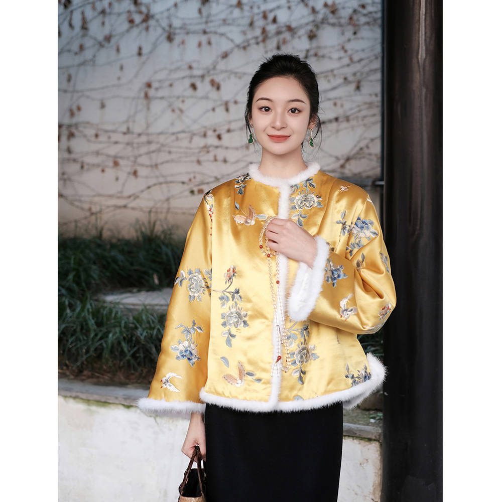 Miss Orange New Chinese Hand Push Embroidered Mink Cotton Jacket