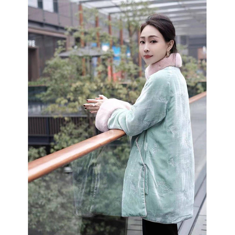 Miss Orange New Chinese Velvet Embroidery with Mink Cotton Jacket