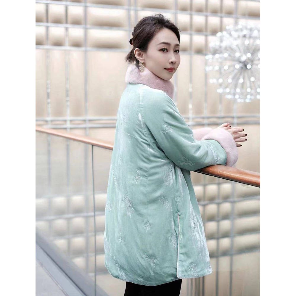 Velvet Embroidery with Mink Cotton Jacket